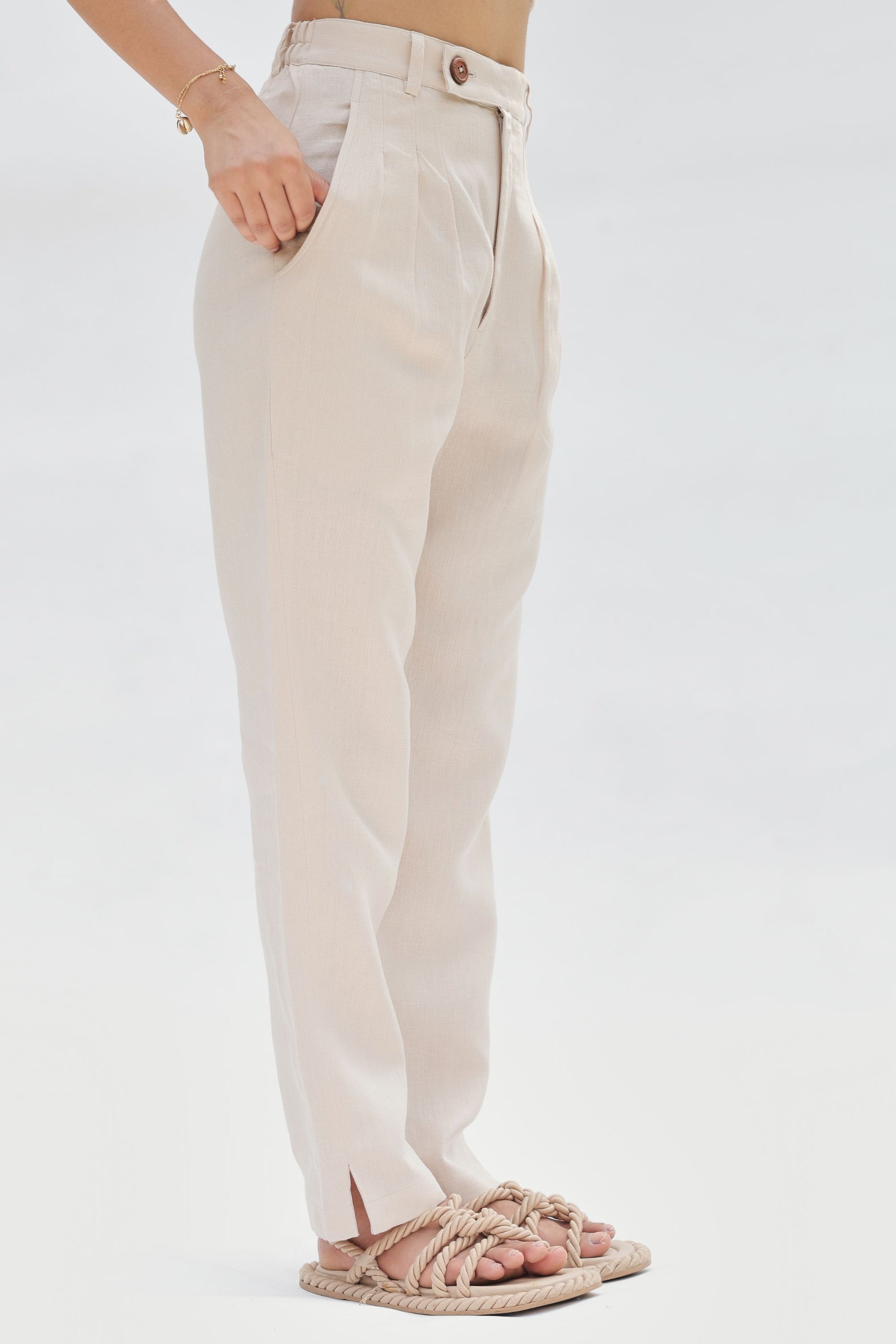 A classic pair of trousers are a perfect everyday go-to piece you can pair with shirts, crop tops, kurtas and more. This piece is crafted from fabric made from flax plant fibres.