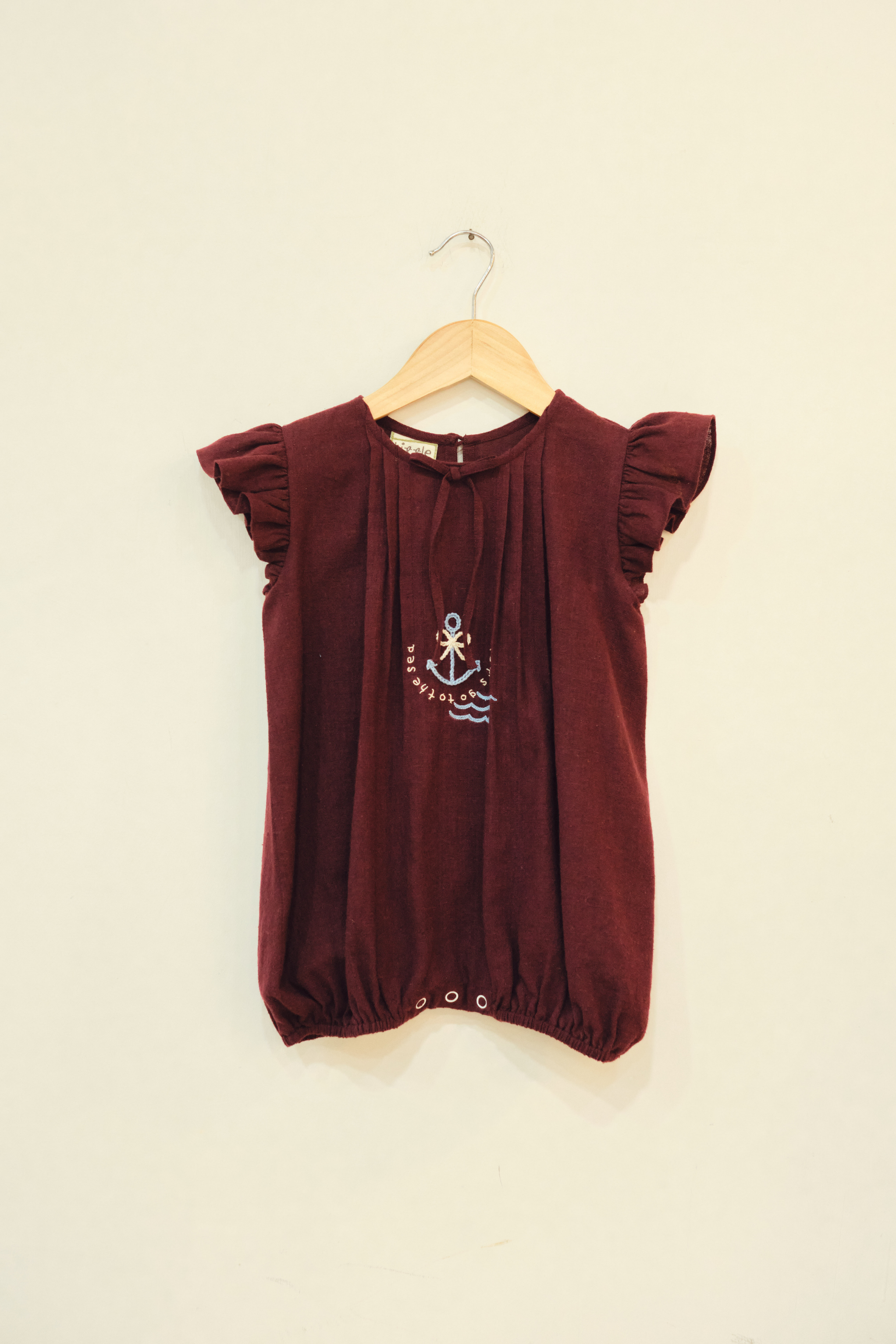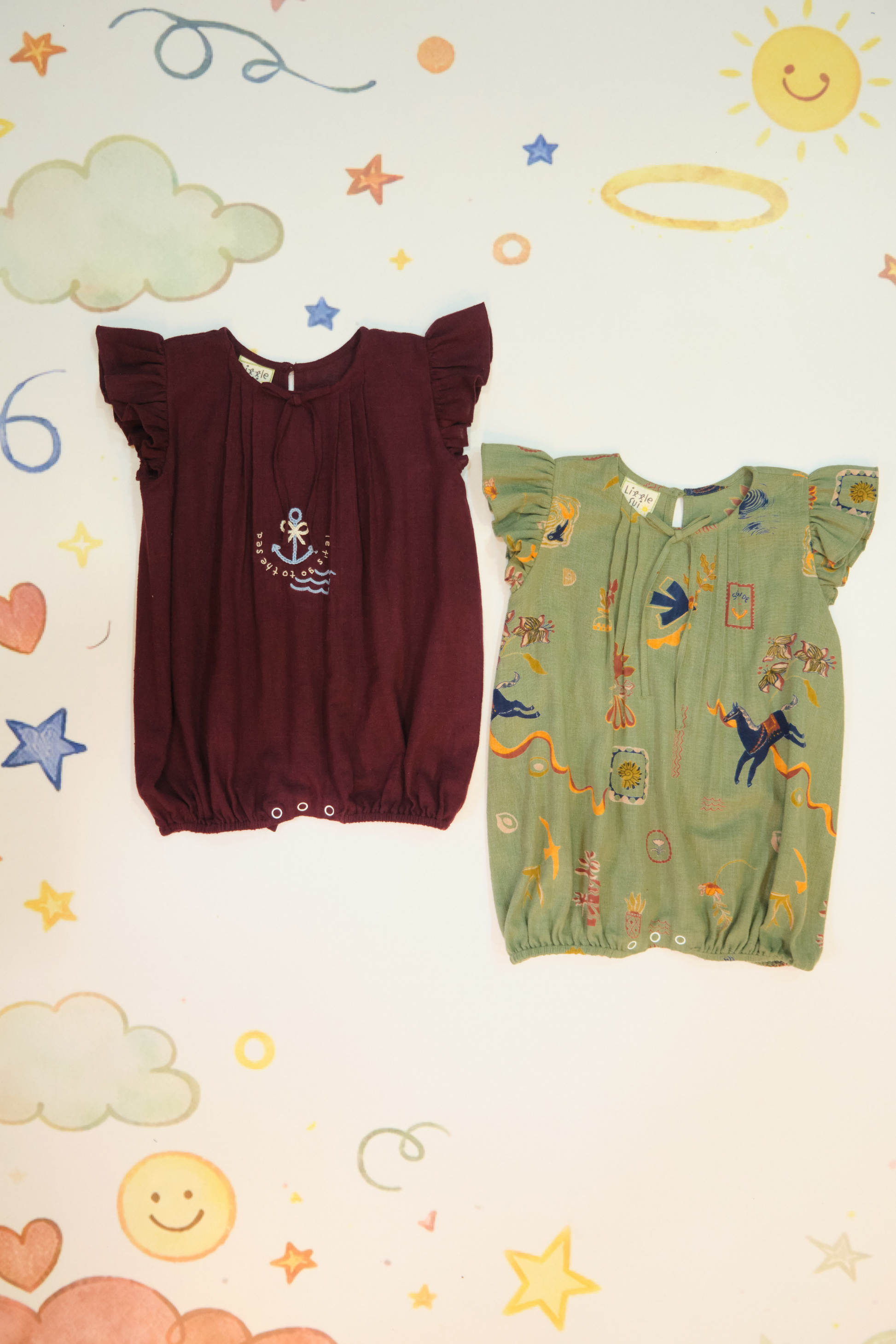 Regular fit, round neck, sleeveless romper crafted in azo-free dyed, handspun and handwoven organic cotton fabric, hand embroidered with shore inspired motifs. This is an all-in-one outfit! Fuss-free, comfortable, and cozy, it makes dressing up effortless - bonus points for being crafted using many by-hand slow techniques!