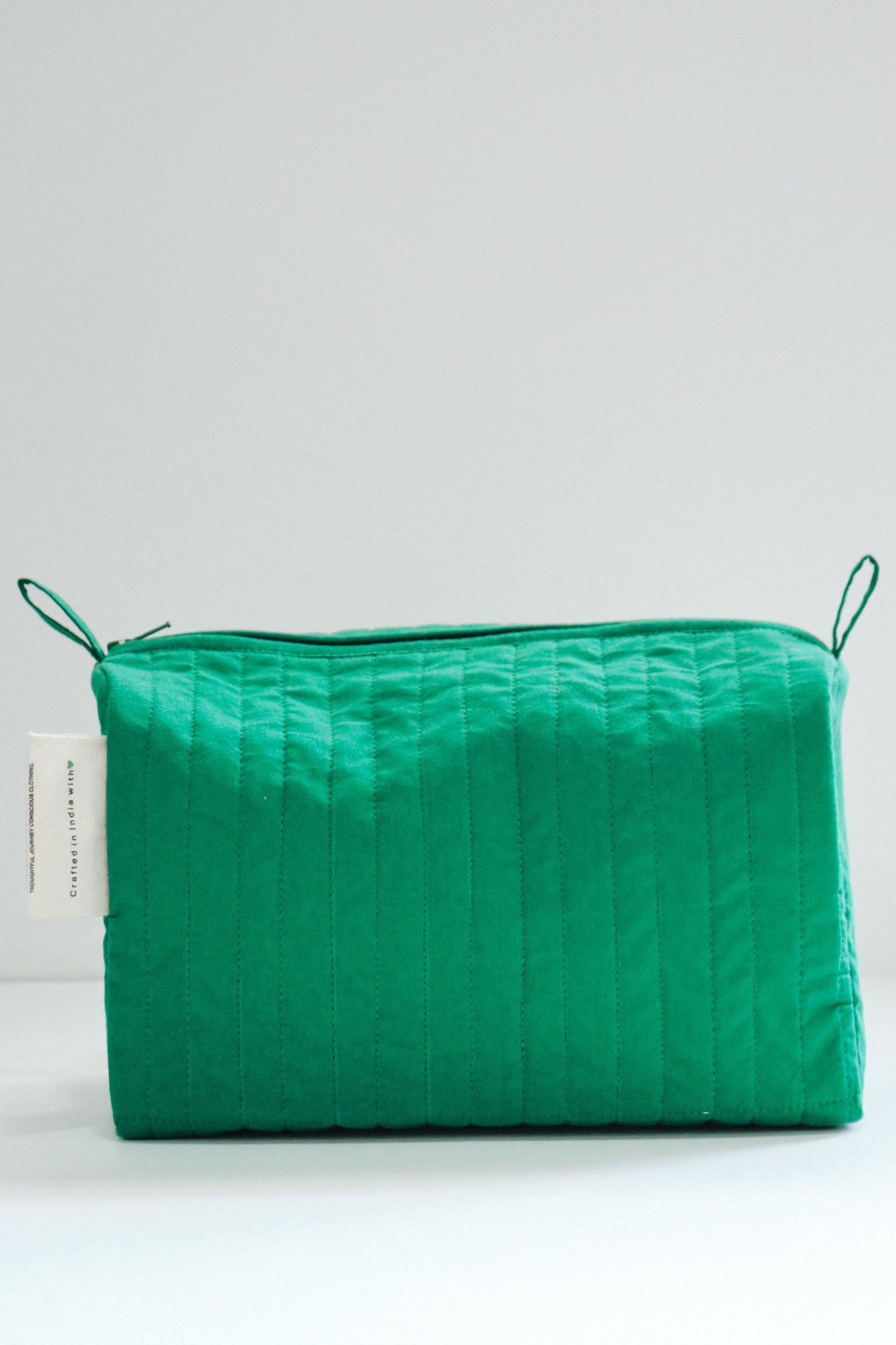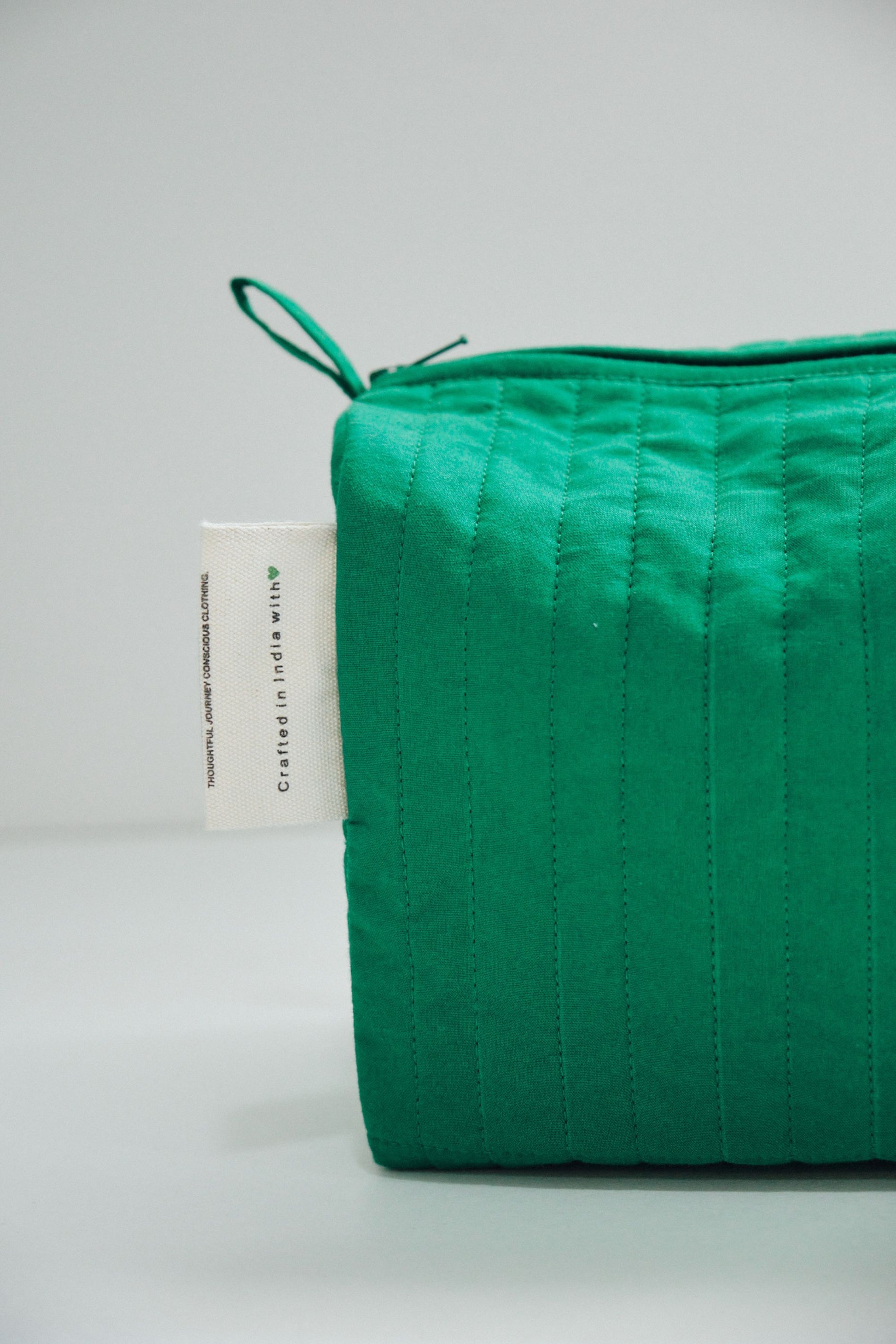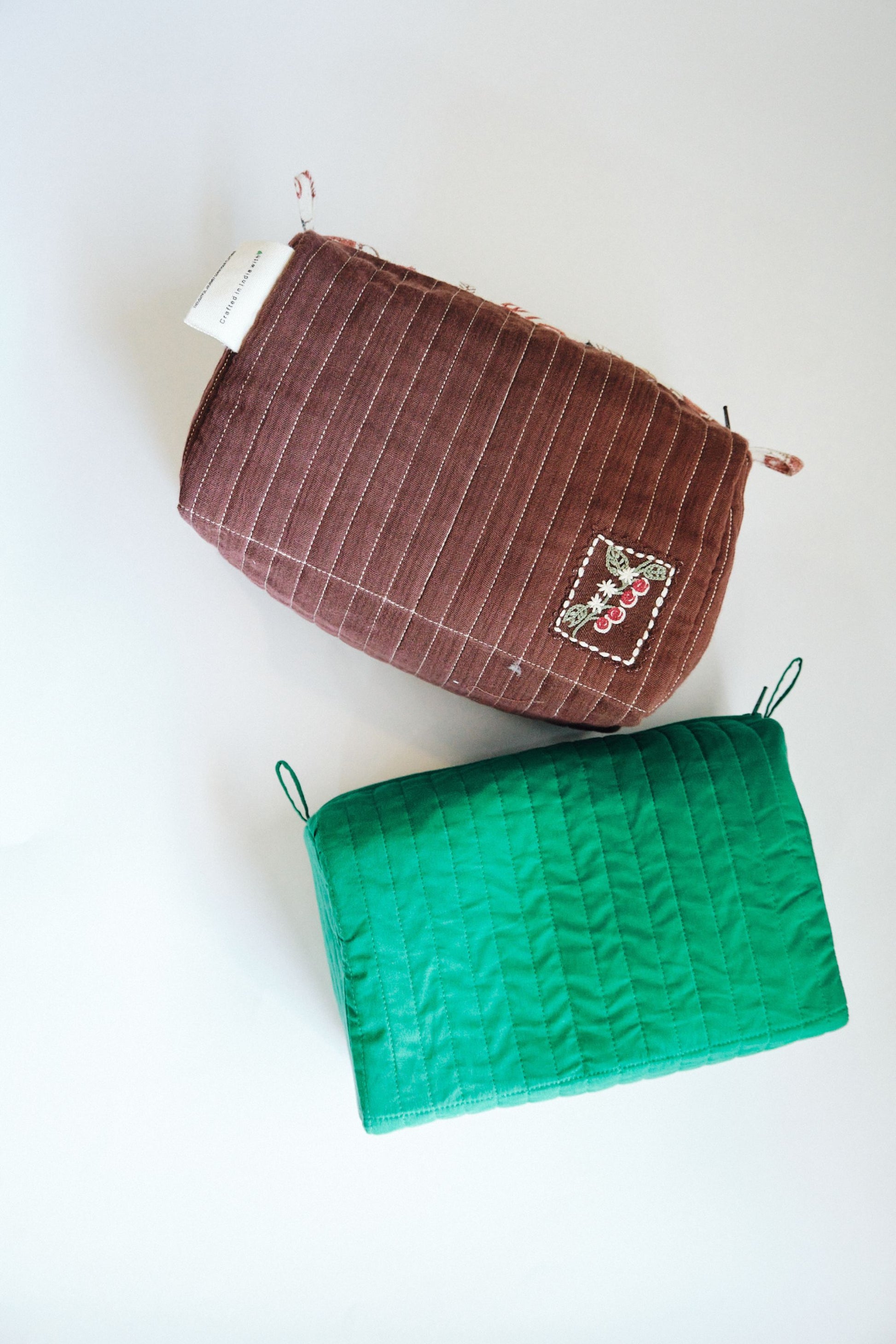 One of a kind make-up pouch, upcycled from fabric scrap. This piece is crafted from one of our winter fabrics - an azo-free dyed, organic cotton poplin fabric. ?Compact and simple, this piece is the perfect green accessory to accompany you on days out when you need your essentials close, and would also be a perfect little gift for your friends, family or any green heart-er in between!