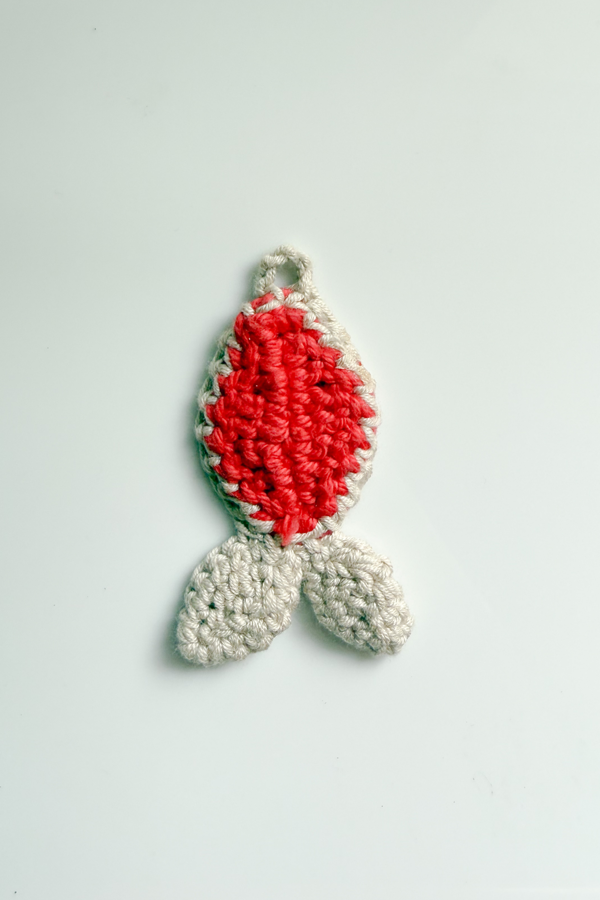 This upcycled keyring charm is hand crocheted using threads in our 'Meet Me By The Sea' colours to create a fish.